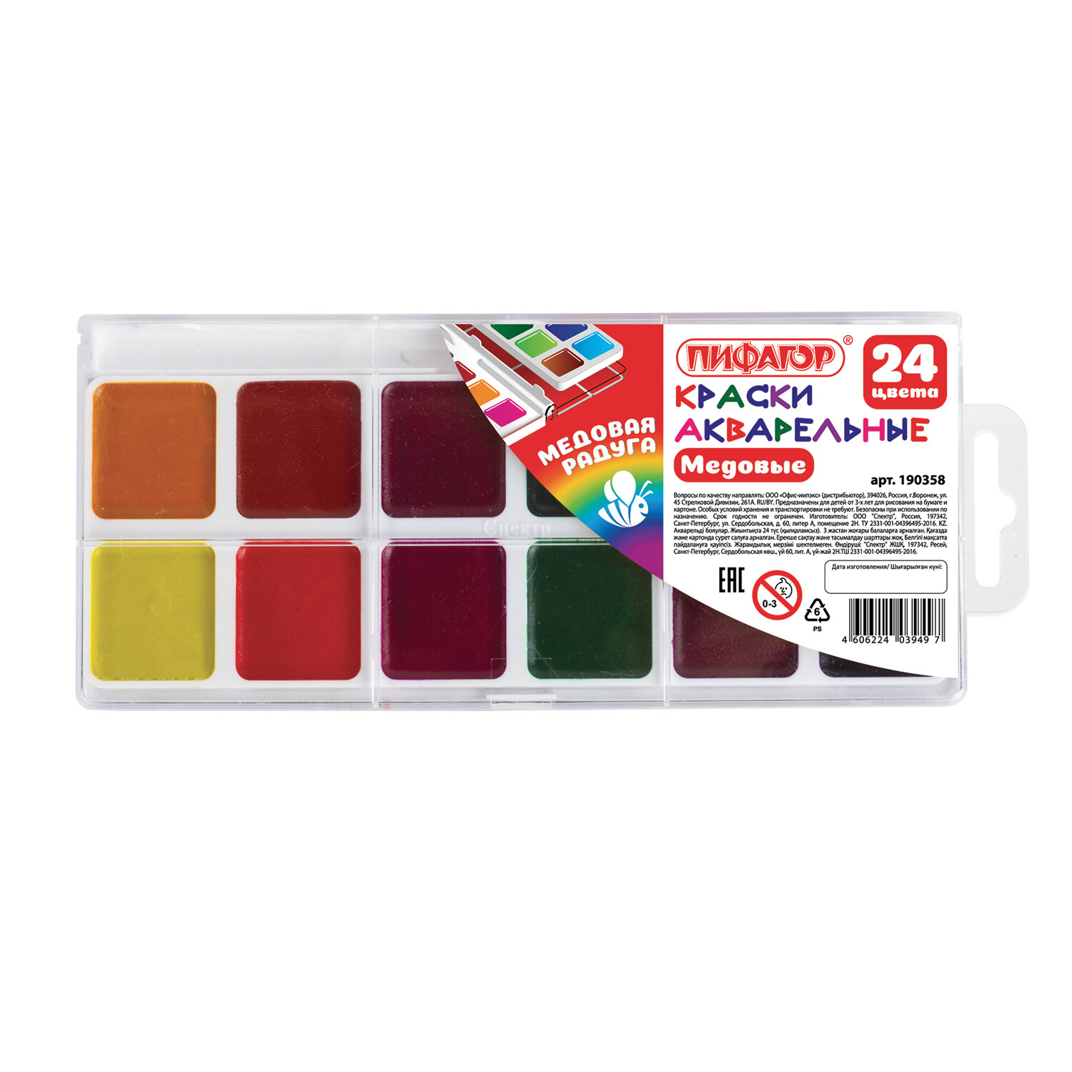 Краски акварельные медовые "Пифагор" 24 цв "Медовая радуга" п/у б/к 190358