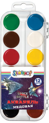 Краски акварельные медовые "Silwerhof" 12 цв "Spase Battle" к/у б/к 961106-12