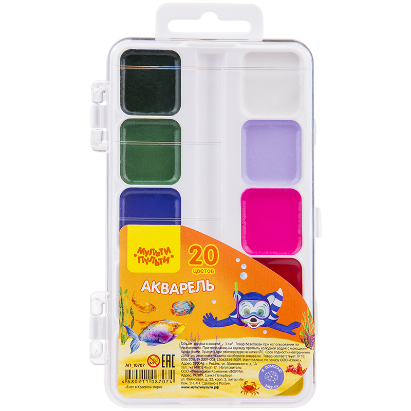 Краски акварельные "Мульти-Пульти" 20 цв "Енот в Красном море" п/к б/к арт.АП_10707