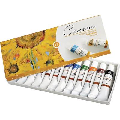 Набор масляных красок Сонет ТМ "Невская палитра" представляет собой комплект из 12 красок. Масляные краски помещены в небольшие тубы объемом 10 мл и отличаются глубиной оттенков, не меняющейся после высыхания краски. Основой для красок служат растительные ингредиенты. краски не содержат вредных пигментов.