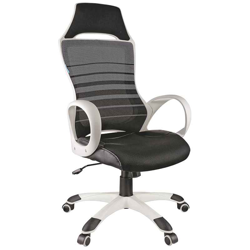 Кресло игровое Helmi HL-S05 "Podium" ткань/сетка/экокожа черная, пластик белый