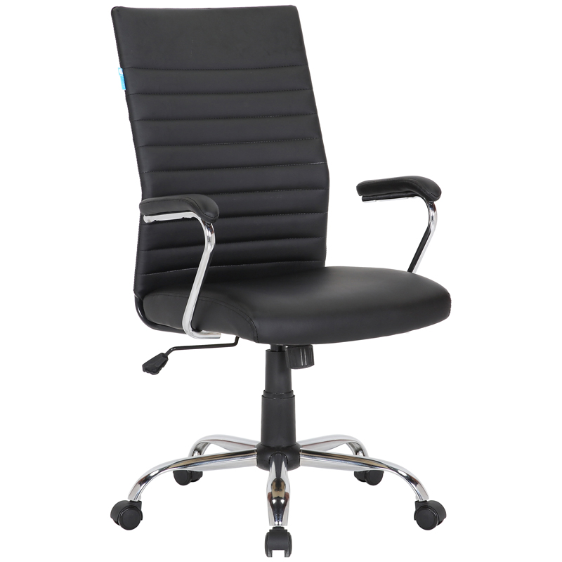 Кресло руководителя классического стиля - на металлическом каркасе с хромированными элементами, отличительным дизайном подлокотников и горизонтальной отстрочкой на спинке.