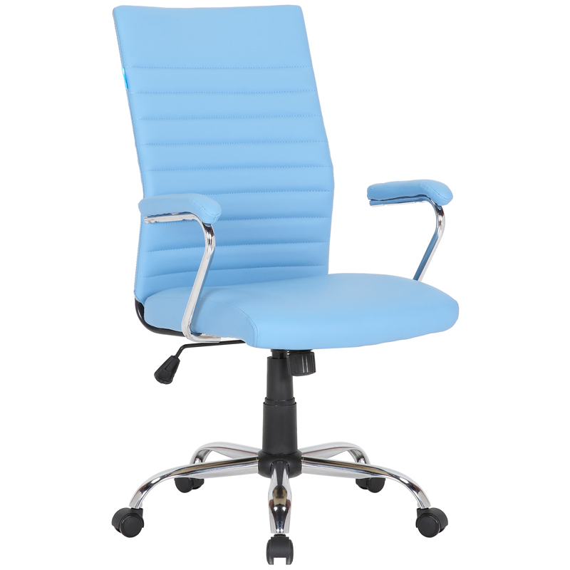 Кресло руководителя классического стиля - на металлическом каркасе с хромированными элементами, отличительным дизайном подлокотников и горизонтальной отстрочкой на спинке.