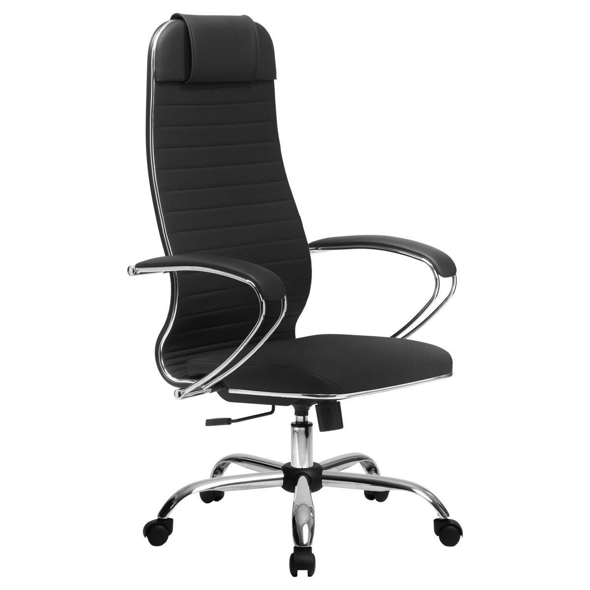 - регулировка высоты сиденья, фиксация в верхнем и нижнем положении. Каркас кресла: цельный стальной, покрытый зеркальным хромом. Подлокотники: стальные хромированные, с мягкими накладками. Пятилучье: стальное, покрытое зеркальным хромом. Механизм качания: "Топ-ган ШП" с фиксацией в рабочем положении. (Механизм на шариковых подшипниках: бесшумный и долговечный). Ролики: пластиковые, стандарт BIFMA 5.1 (США). Рекомендуемая максимальная нагрузка: 120 кг.