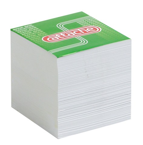 Блок белых листочков для записей Attache склеен по одной стороне, такая фиксация позволяет использовать листы без дополнительных диспенсеров. Размер блока составляет 9×9х9 см. Плотность бумаги 100 г/кв.м.