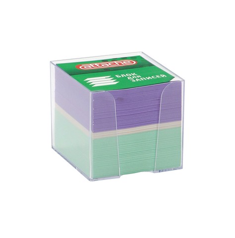 Блок-кубик Attache поставляется в комплекте с прозрачным пластиковым боксом. Листочки изготовлены из офсетной бумаги высокого качества, плотностью 100г/кв.м. В наборе — квадратные листочки (9×9 см) двух цветов. Блок-кубик упакован в герметичную полиэтиленовую пленку.