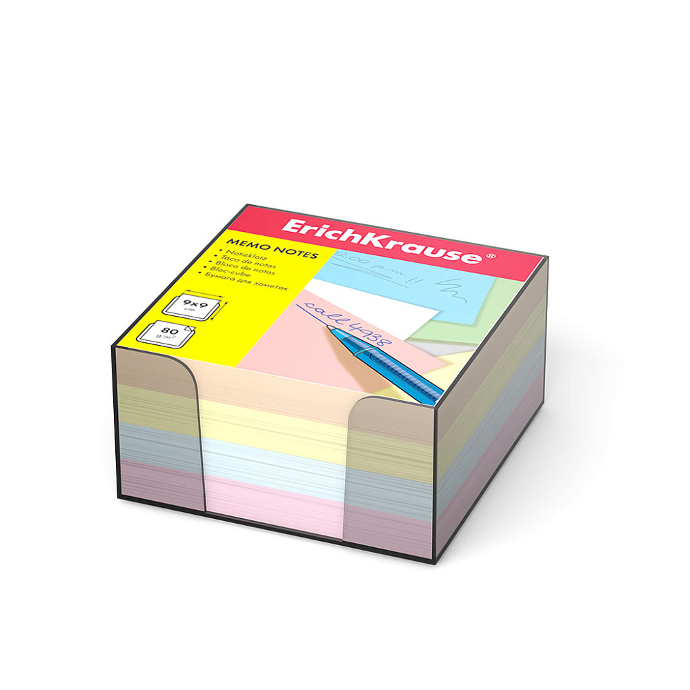 Бумага для заметок предназначена для оперативной записи необходимой информации. Подставка из тонированного пластика обеспечивает удобство в использовании и помогает организовать пространство на рабочем столе. Листы плотно уложены и имеют ровный срез, изготовлены из качественной бумаги плотностью 80 г/м2. Размер листа - 90х90 мм. Высота блока - 50 мм. Цвет бумаги: розовый, желтый, голубой, персиковый. Упаковка - теромоусадочная пленка.