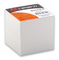 Запасной бумажный куб выполнен из белой чистоцеллюлозной бумаги самого высокого качества. Плотность 80 гр./кв.м, белизна 94%. Размер 90х90х90 мм или 90х90х50 мм. Упакован в термопленку.