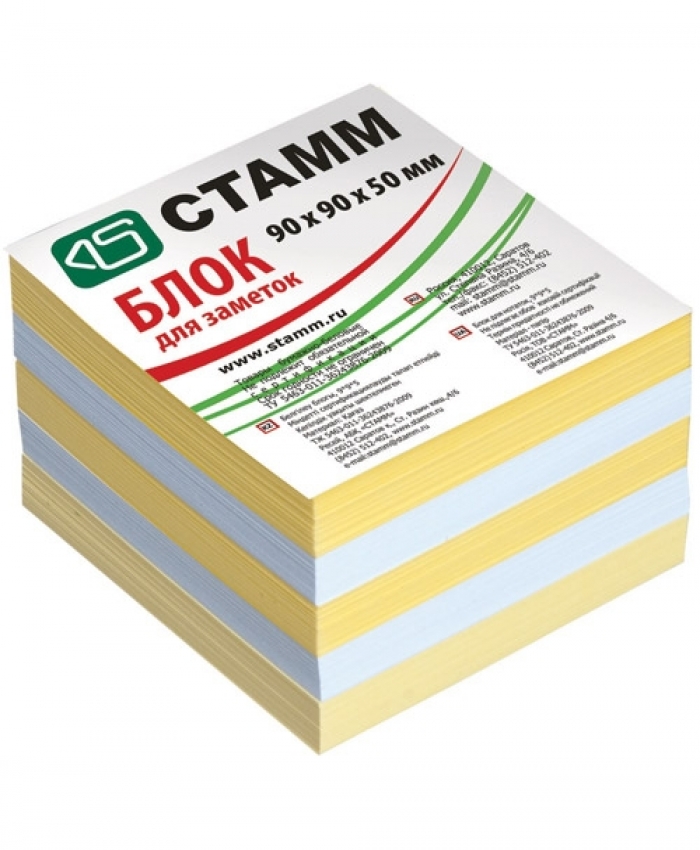 Куб-блок Стамм цветной 90*90*50 мм. запасной 2-х цветный желтый арт.Б325