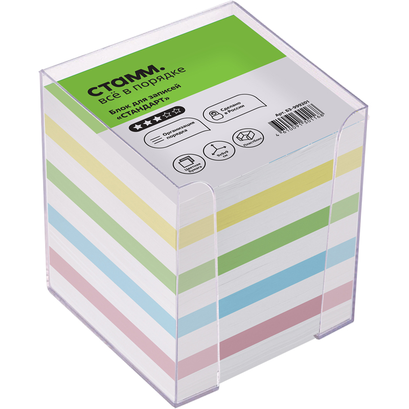 • Блок бумаги СТАММ Стандарт в прозрачном пластиковом боксе подходит для оперативных записей необходимой информации.