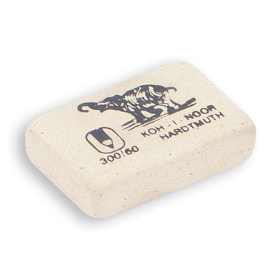 Ластик Koh-I-Noor белого цвета. Ластик имеет компактные размеры. Изготовлен с добавлением каучука. Ластик подходит для стирания графитовых рисунков и надписей, не оставляет разводов, не царапает поверхность. Размер ластика: 30x20x7 мм.