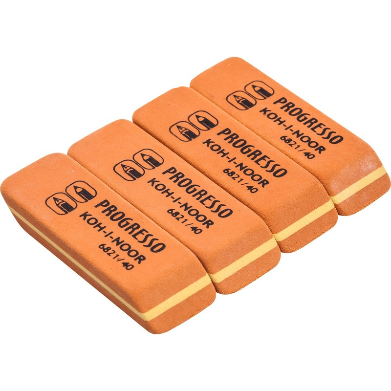 Мягкий ластик с добавлением натурального каучука, предназначен для удаления графитовых карандашей мягкости 4В-6Н, а также цветных карандашей и шариковых ручек. В наборе четыре ластика. Цвет: оранжевый с желтой полосой. Размер одного ластика — 50×20×7 мм.