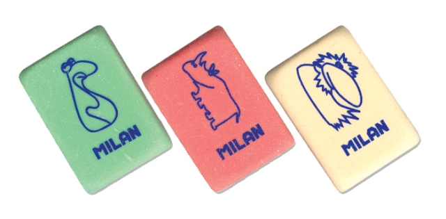 Ластик для карандашей Milan 4060 H, 2H, 4H, с рисунками животных, 6 видов, размер 27x19x9 мм