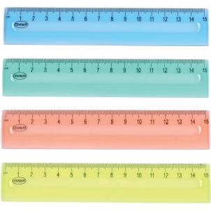 80725 Линейка 15 см. пластиковая прозрачная. Ассорти 4 цвета.