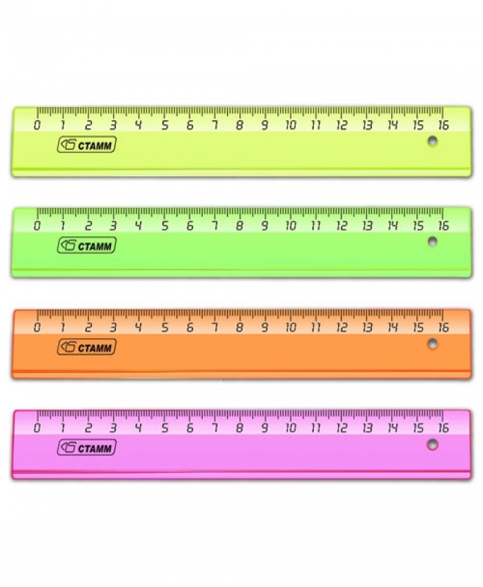 Линейка 16 см пластиковая СТАММ ЛН-01 Neon 4 цвета