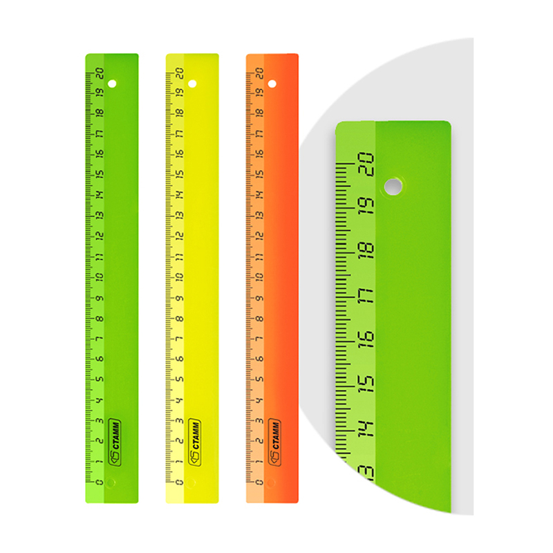ровная четкая миллиметровая шкала гладкая глянцевая поверхность безопасные закругленные углы индивидуальный штрих-код на единице изделия сертифицированный полистирол