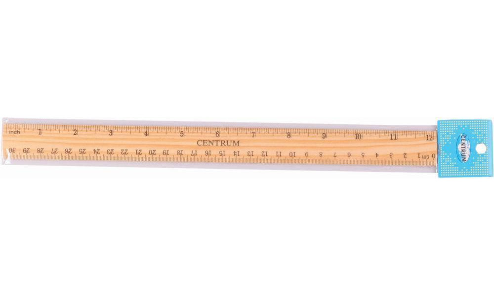 Линейка компании Centrum прочная, так как произведена из качественной древесины. Разметка выполнена черной краской. С одной стороны линейки указаны делениями миллиметры и цифрами сантиметры. С другой стороны — дюймы. В центре линейки размещено название бренда. Линейка тщательно отшлифована, поэтому ребенок не поранится и не посадит занозу во время черчения.