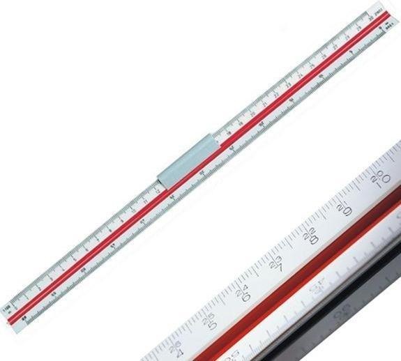 Линейка - 30 см, масштабная трехгранная, 6 шкал (2:1/1:1/1:2/1:2,5/1:5/1:15), в блистере. Размер: 300x20x5 мм