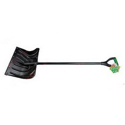 Снеговая лопата имеющая широкий и глубокий ковш из морозостойкого пластика.