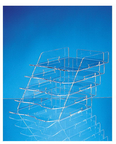 Горизонтальный лоток для бумаг имеет 5 отделений, выполненных со смещением, изготовлен из прозрачного акрилового стекла толщиной 3 мм. Предназначен для хранения и сортировки документов формата А4. Возможность надстройки лотков один на другой отсутствует.