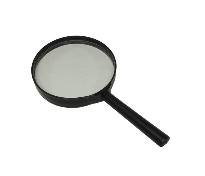 Лупа с диаметром 90 мм, 3-хкратное увеличение. Стеклянная линза круглой формы в пластиковом корпусе.