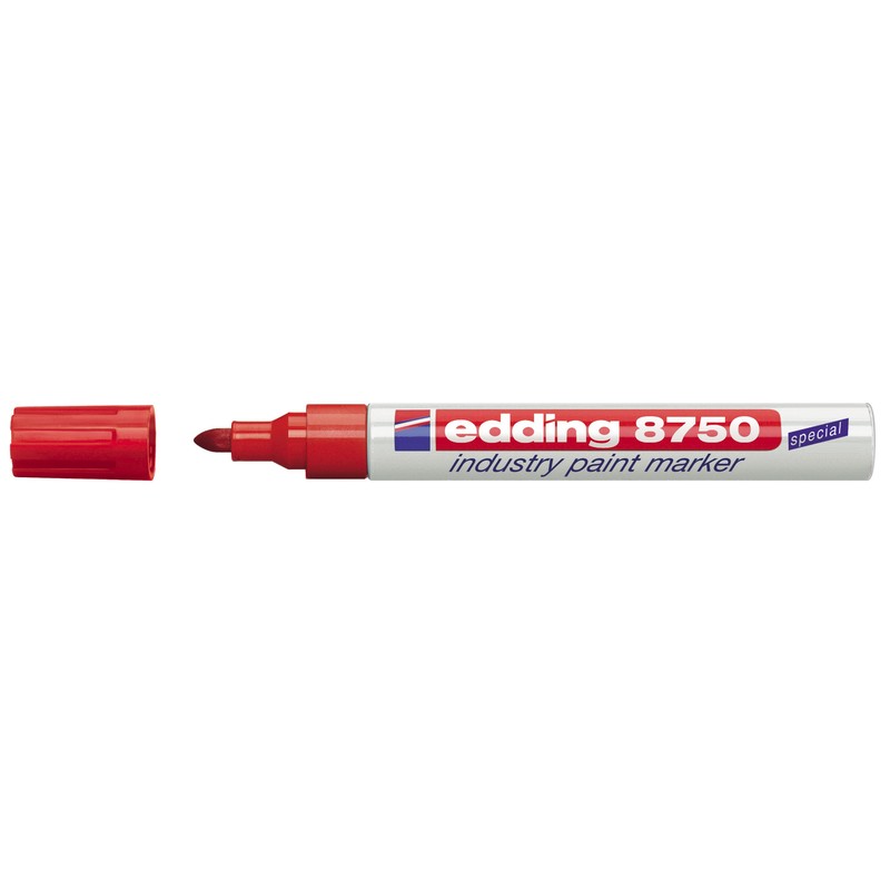 Промышленный маркер Edding в металлическом корпусе заправлен чернилами крас. цвета, которые не размазываются, не растекаются, быстро высыхают. Круглый наконечник, толщина линии письма — 2-4 мм. Подходит для маркировки практически любых поверхностей, включая жирные и пыльные, выдерживает неблагоприятные условия — дождь, снег, мороз. Для использования на стройках, на производстве.