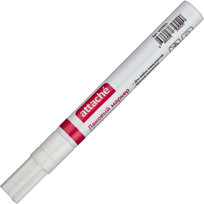 Маркер лаковый Attache для непрозрачной маркировки практически всех материалов, например стекла, пластика, дерева или металла. Особенно подходит для темных и прозрачных материалов. Чернила маркера с лакирующим эффектом. Водостойкий, быстро сохнет. Поток чернил регулируется клапаном. Алюминиевый корпус. Толщина линии - 4 миллиметра. Количество краски - 6 грамм. Наконечник изготовлен из японского качественного материала.