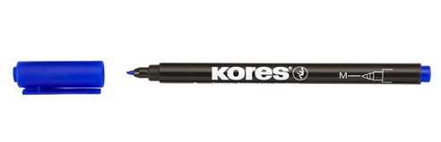 Перманентный маркер Kores в пластиковом корпусе. Нестираемые чернила синего цвета обладают повышенной светостойкостью. Тонкий наконечник круглой формы обеспечивает толщину линии до 1 мм. Маркер оснащен вентилируемым колпачком, который предотвращает высыхание чернил.