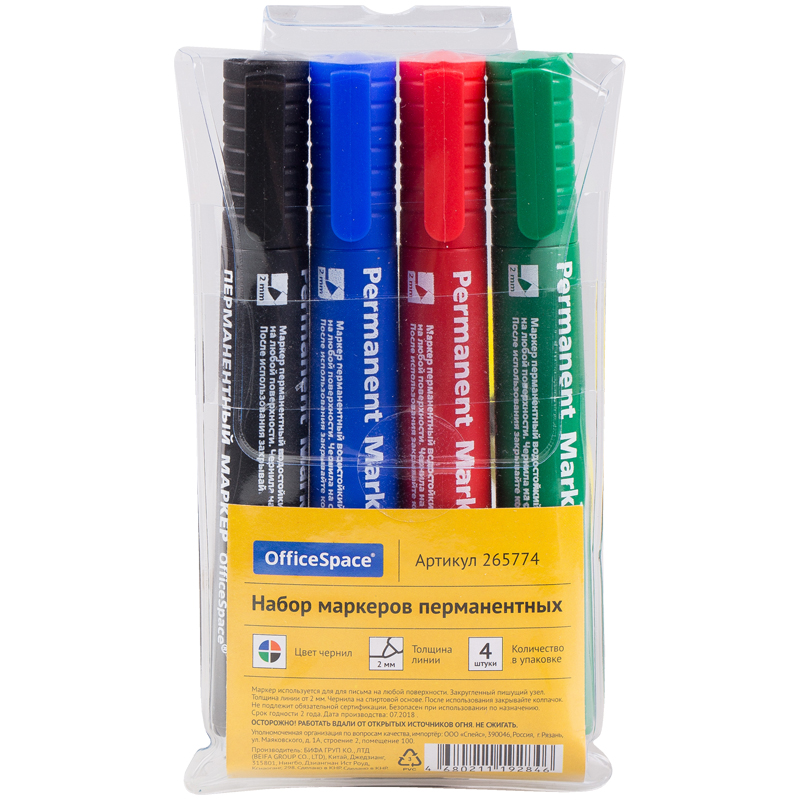 Подходит для письма на любых поверхностях. Чернила на спиртовой основе. Плотный колпачок с клипом надежно предотвращает высыхание. Цвет колпачка соответствует цвету чернил. Пулевидный пишущий узел. Ширина линии 2 мм.