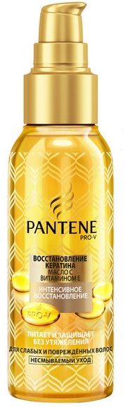 Формула PANTENE PRO-V в сочетании с Витамином Е помогает питать и защищать волосы от повреждений при укладке. Масло обладает легкой консистенцией и легко распределяется по волосам, не делая их жирными и не утяжеляя