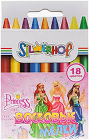 Количество цветов: 18 Круглый корпус. Яркие цвета, отличные кроющие свойства, мягкое письмо. Длина: 89 мм. Каждый мелок обернут в бумажную гильзу.