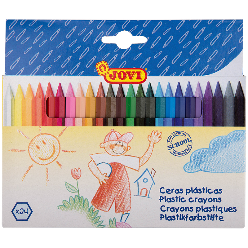 Шестигранные пластиковые карандаши толщиной 8 мм, длиной 115 мм. Рисуют на любой бумаге, кроме бумаги с глянцевой поверхностью, не гнутся, не пачкают руки, не липнут, не выпотевают, не имеют запаха, не ломаются при падении, могут стираться ластиком. Могут использоваться очень долго, так как полностью состоят из пишущего стержня. Расширенная палитра из 24 красивых чистых цветов. Гипоаллергенны, не содержат глютен. Страна производства Испания
