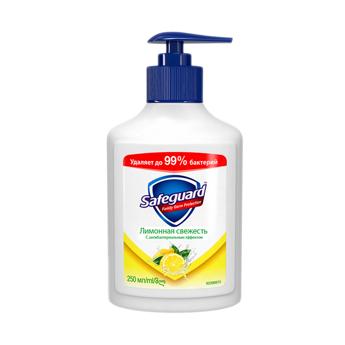 Жидкое мыло Safeguard с чудесным цитрусовым ароматом уничтожает до 99,9% всех болезнетворных бактерий и нежно ухаживает за вашей кожей. Средство имеет приятную консистенцию и высокое пенообразование. Уникальная очищающая формула мыла очень деликатно воздействует на кожу рук, оказывает увлажняющее действие и не вызывает аллергии. Благодаря компактному флакону с дозатором мыло не проливается и очень экономно в использовании.