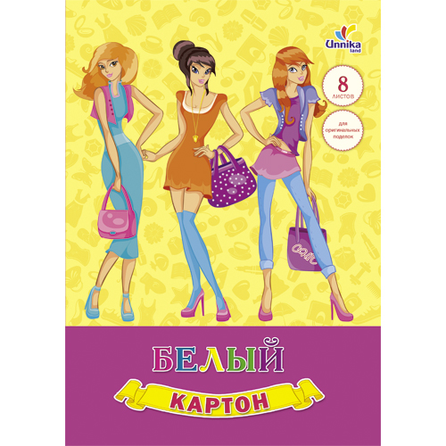 Набор белого картона "Unika" А-4 8 л. "Модные подружки" БК8189