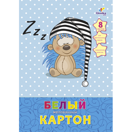Набор белого картона "Unika" мелованный А-4 8 л. "Ёжик-соня" БКМ8194