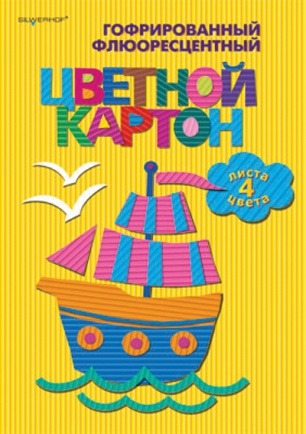 Набор цветного картона "Silwerhof" 4цв/4л, А4 гофрированный, флуоресцентный Кораблики, арт. 918007-04