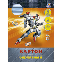 Бархатный цветной картон. Формат: А4 (200x280 мм). Количество листов: 5. Количество цветов: 5. Папка: мелованный картон, глянцевая ламинация с вырубкой и карманом.