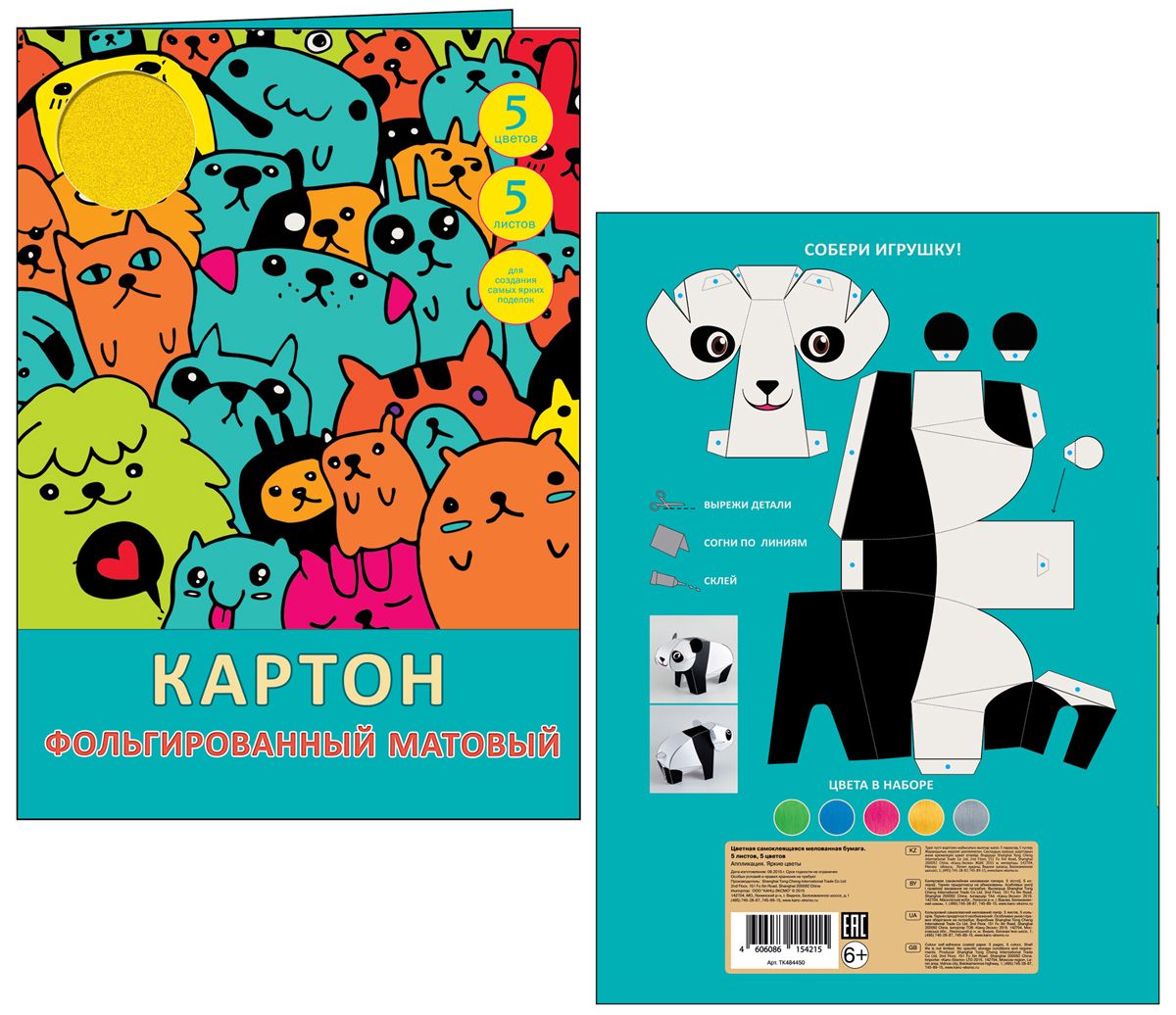 Набор цветного картона "Unika" А-4 5л. 5 цветов Фольгированный мат. "Яркая компания" ЦКМФ55381