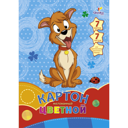 Набор цветного картона "Unika" А-4 7л. 7 цветов Мелованный "Веселый щенок" ЦКМ77214