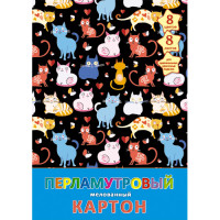 Картон перламутровый мелованный для детского творчества. Формат: 200x280 мм. Количество листов: 8. Количество цветов: 8. Папка: мелованный картон.