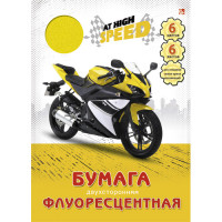 Флуоресцентная бумага (двухсторонняя). Формат: 200x280 мм. Количество листов: 6. Количество цветов: 6. Папка: мелованный картон, с карманом и вырубкой.