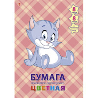 Набор цветной бумаги А-4 "Unika" 8 л. 8 цв. 2-х ст/мелованная "Милый котенок" ЦБМ288113