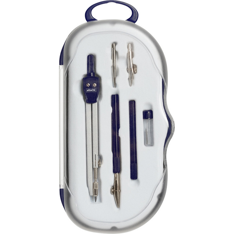Набор чертежных принадлежностей из 6 предметов: циркуль из металлического сплава (длина 135 мм), запасной грифель, рейсфедер, точечная насадка, рейсфедерная вставка, ручка для рейсфедера.