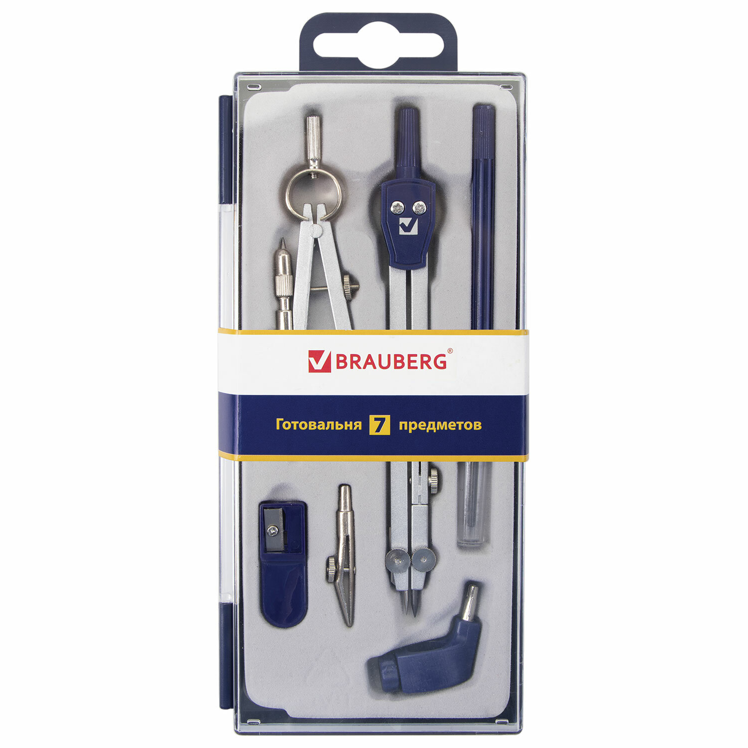 Готовальня BRAUBERG "Student Oxford", 7 предметов: наполнение-1, пенал с подвесом