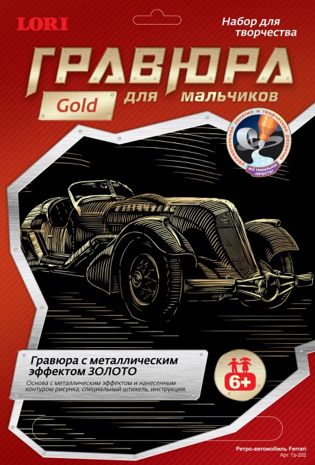 Набор для творчества гравюра "Ретро-автомобиль Ferrari" с золотым эффектом. арт.Гр-202