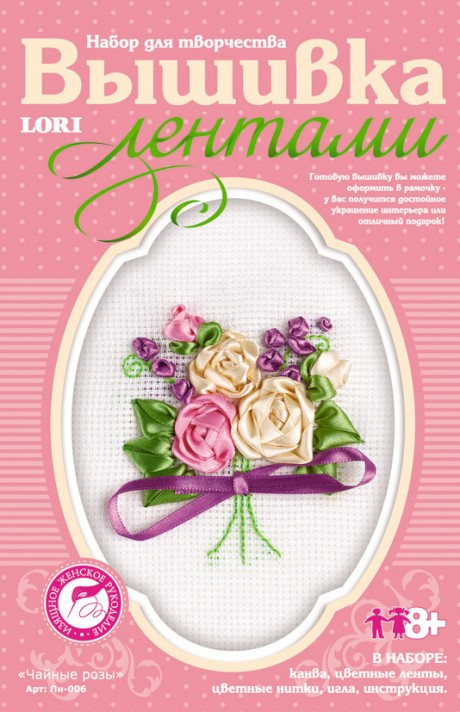 В наборах серии «Вышивка лентами» мы предлагаем поучиться разным приёмам этого вида рукоделия. Освоив их, вы сумеете не только украсить интерьер вашей квартиры, но и расшить особым образом одежду, аксессуары, придав им изюминку.