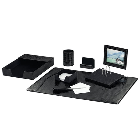 Настольный набор из экокожи с отделкой под кожу крокодила - это атрибут делового человека в сфере его деятельности.