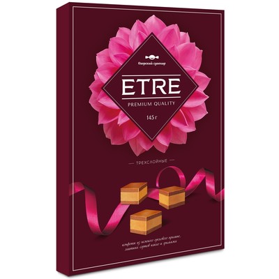 Конфеты ETRE - нежного орехового пралине с добавлением африканских какао-бобов интенсивной обжарки, молока и ванили. Традиционно высокое качество ингредиентов, уникальный формат <кубик>, эксклюзивная упаковка и демократичная стоимость - все это оценят в конфетах ETRE истинные гурманы.