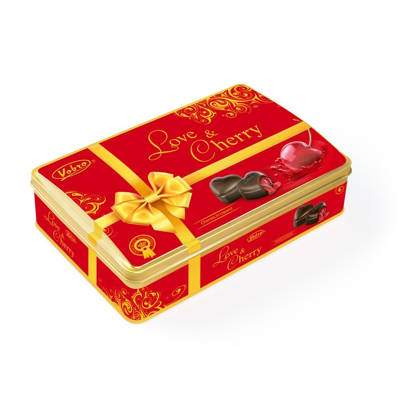 Десертные шоколадки с вишней в ликере. Состав: шоколад 56% (сахар, какао-масло, какао тертое, стабилизатор: Е492, эмульгатор: соевый лецитин), сахар, глюкозный сироп, вишня 13,3%, спирт 5%, ароматизатор, вишневый сок. Шоколад: мин.58% какао-массы. Продукт может содержать небольшое количество арахиса и других орехов. Может содержать глютен и яичный порошок. Пищевая ценность на 100г продукта: белки 3,2г, жиры 21,2г, углеводы 58г. Энергетическая ценность: 436 ккал. Хранить в сухом прохладном месте. Срок годности: 365 дней.