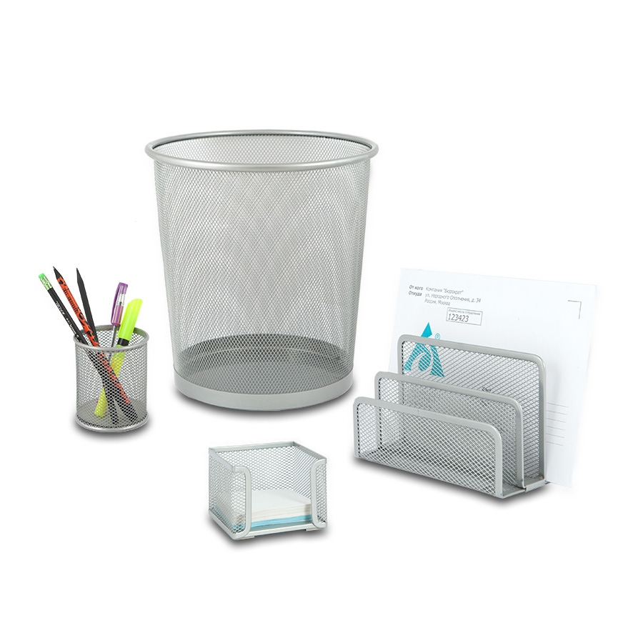Набор настольный Металл.сетка 4 предм, серебристый BLD13 Бюрократ